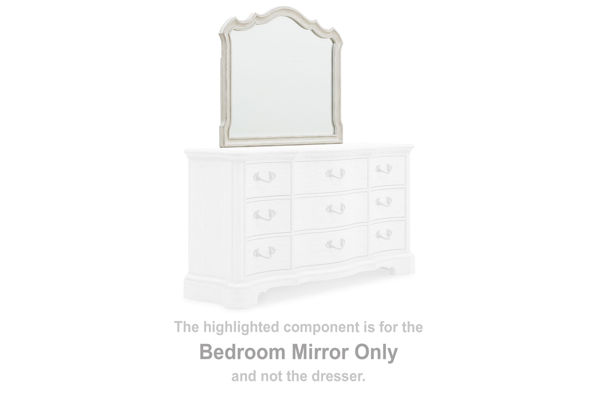 Add a touch of romance to your bedroom with this mirror. Its antiqued white painted finish and serpentine-shaped silhouette details are the picture of easy elegance.
