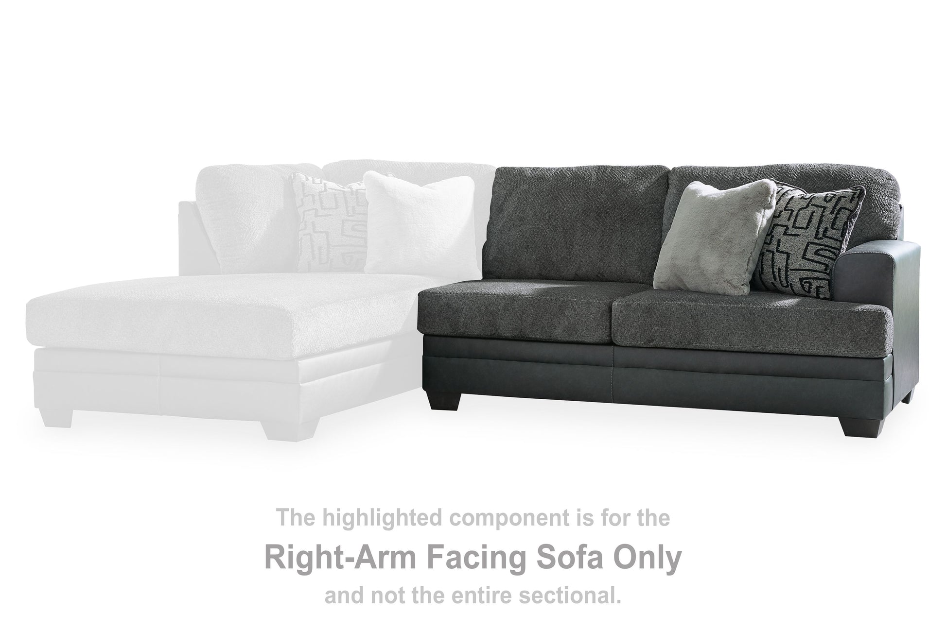 This right-arm facing sofa is made with polyester and faux leather upholstery. Pairs with other items in the series to make a sectional.