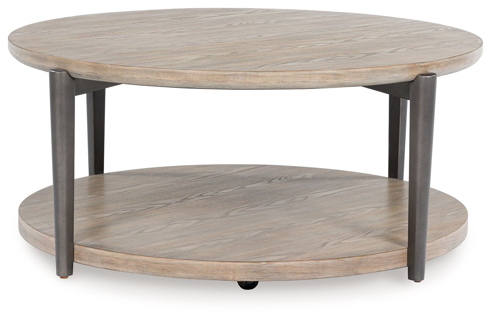 Merging industrial and contemporary elements, this coffee table turns display space into an art form. The whitish brown wood-tone finish is right on trend, while contrasting painted metallic legs offer a modern touch of stripped-back beauty. With its streamlined design, this table proves that less is more.
