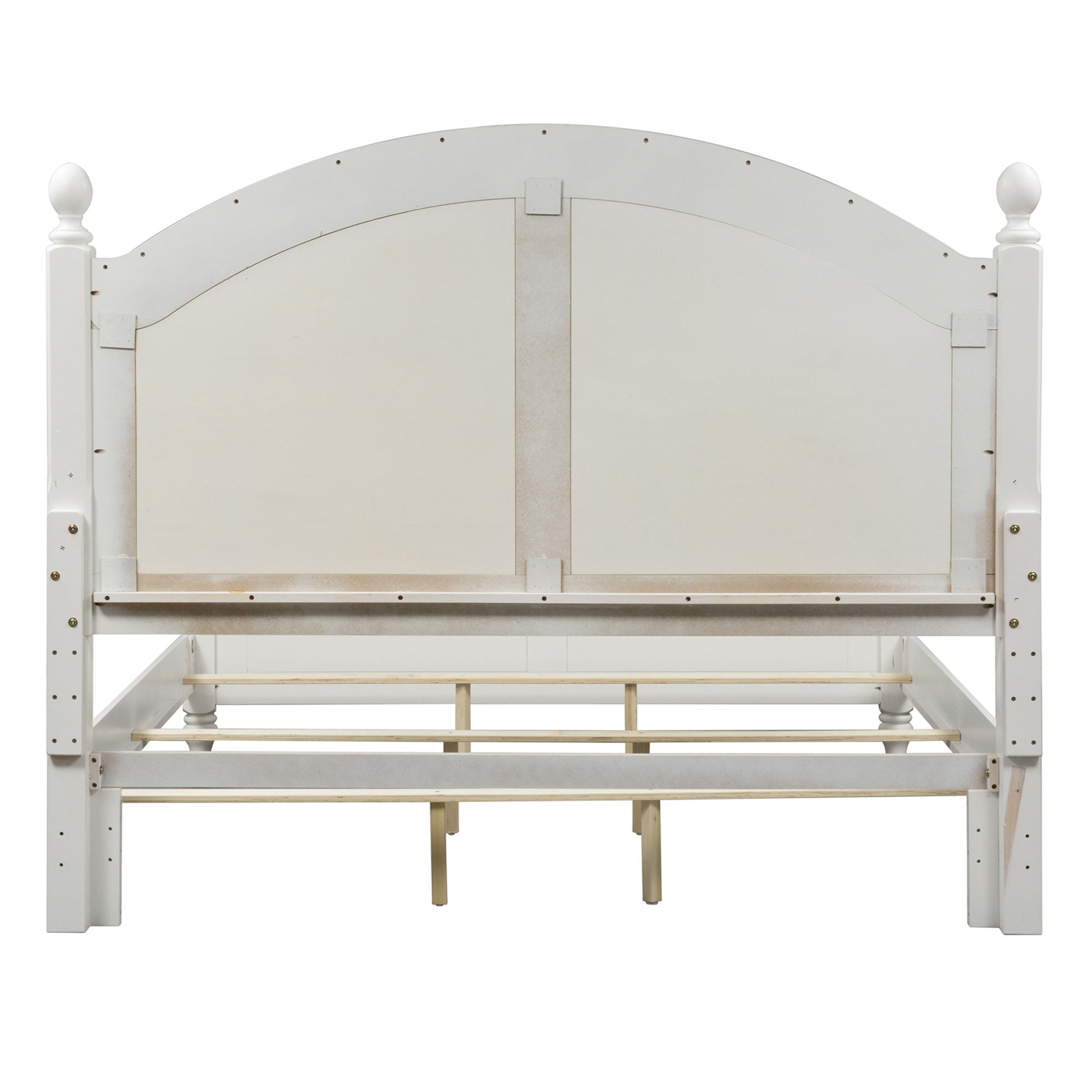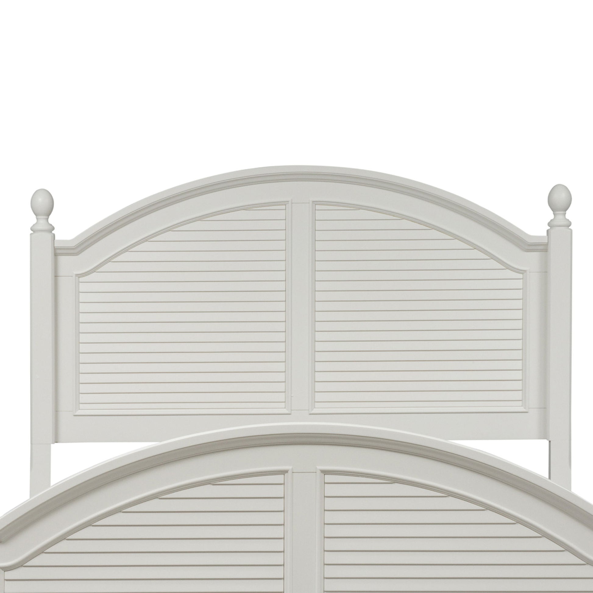 Features arched crown molding accented with a louvered back panel and flanked by two square post with top finale. Headboard can stand alone with Hollywood bed frame. Pair with the footboard and rails for a complete bed.