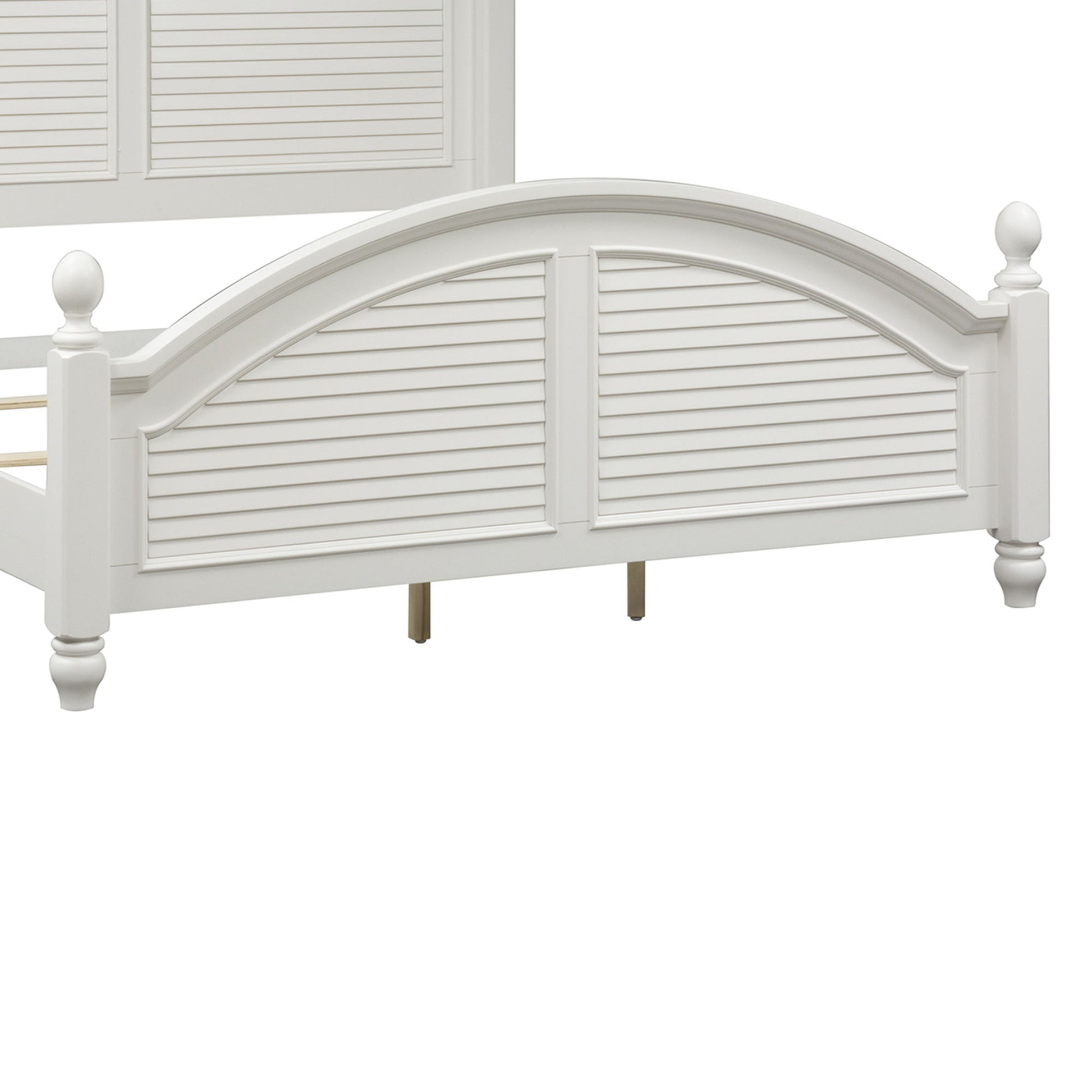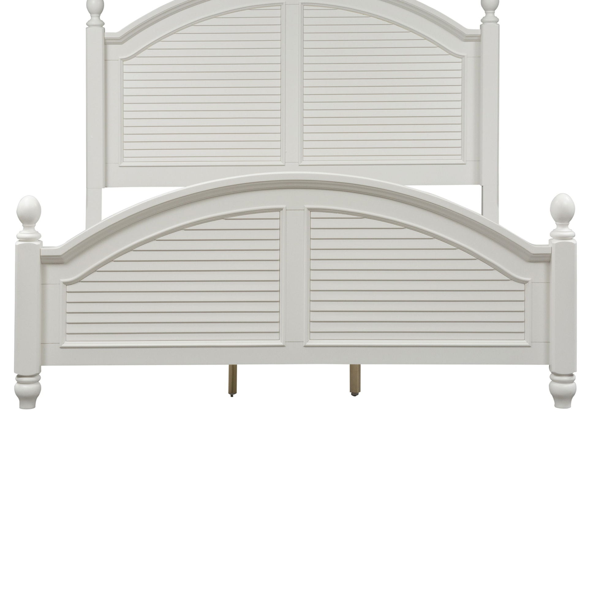 Cottage design is always in fashion. Summer house features the best of cottage with louvered panel accents in an Oyster White finish.