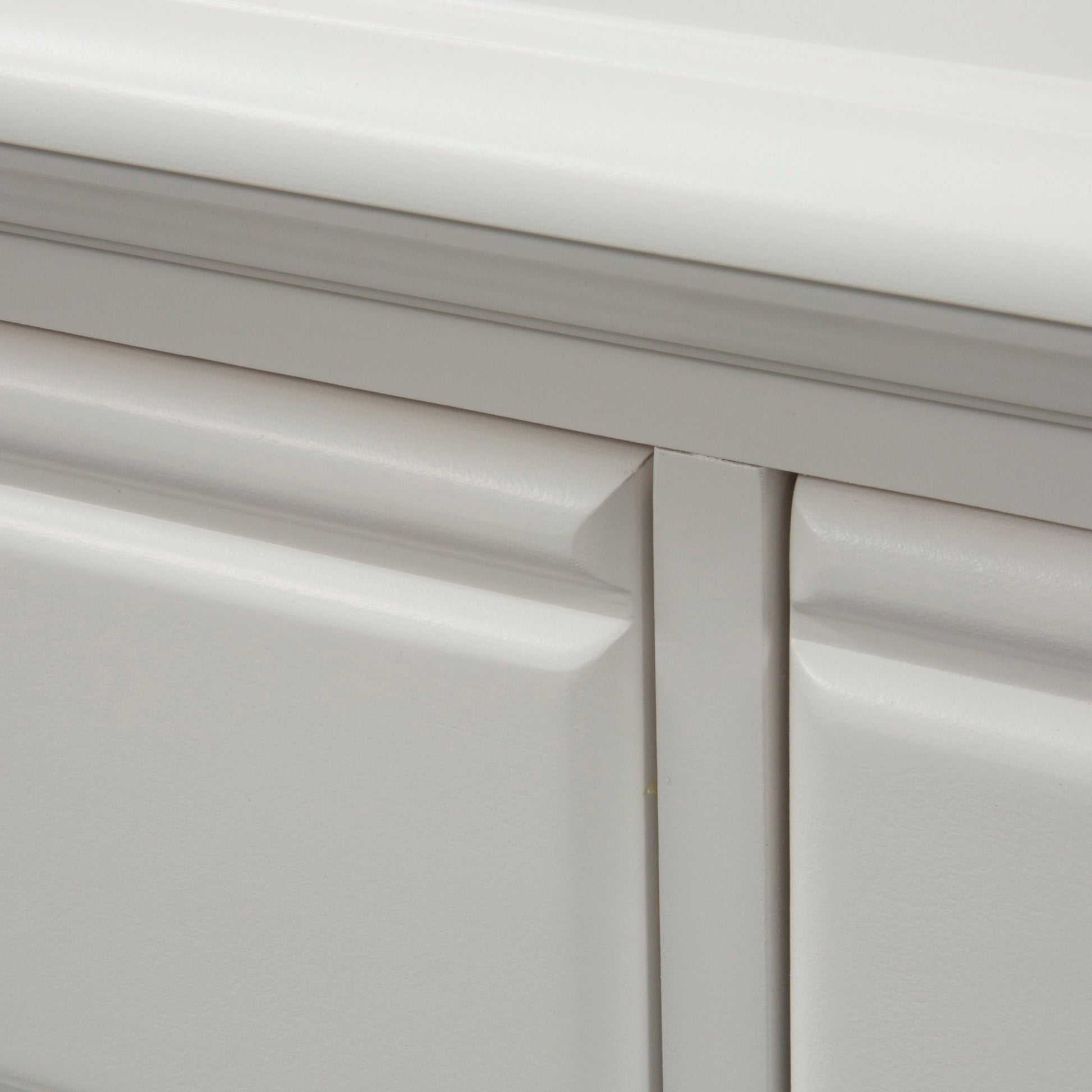 Features two felt lined drawers accented with bead molding, heavy base rail with bun feet. Cannot stand alone. Pair with the headboard and rails for a complete bed.