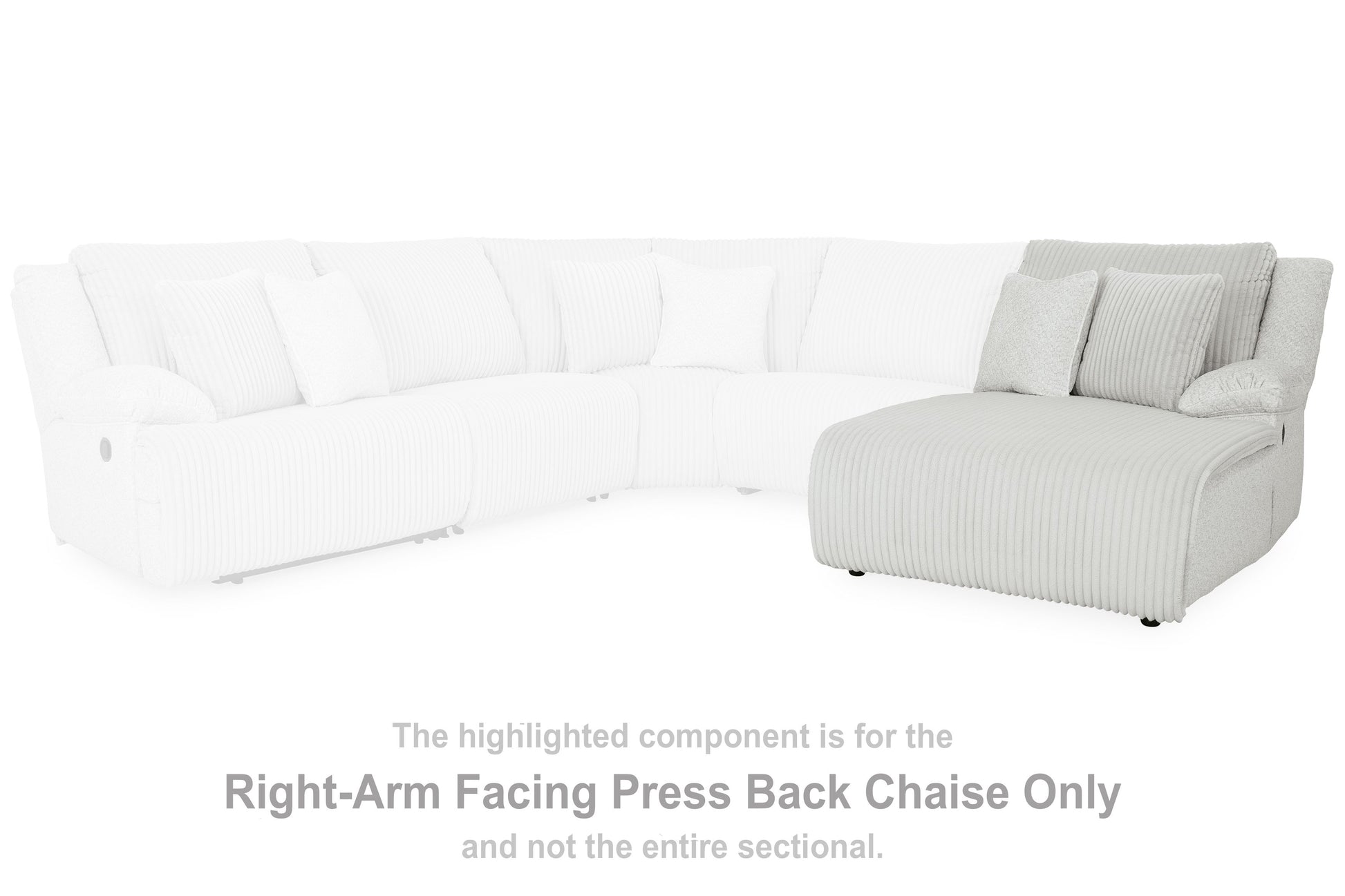 This right-arm facing press-back chaise is made with polyester upholstery. Pairs with other items in the series to make a sectional.